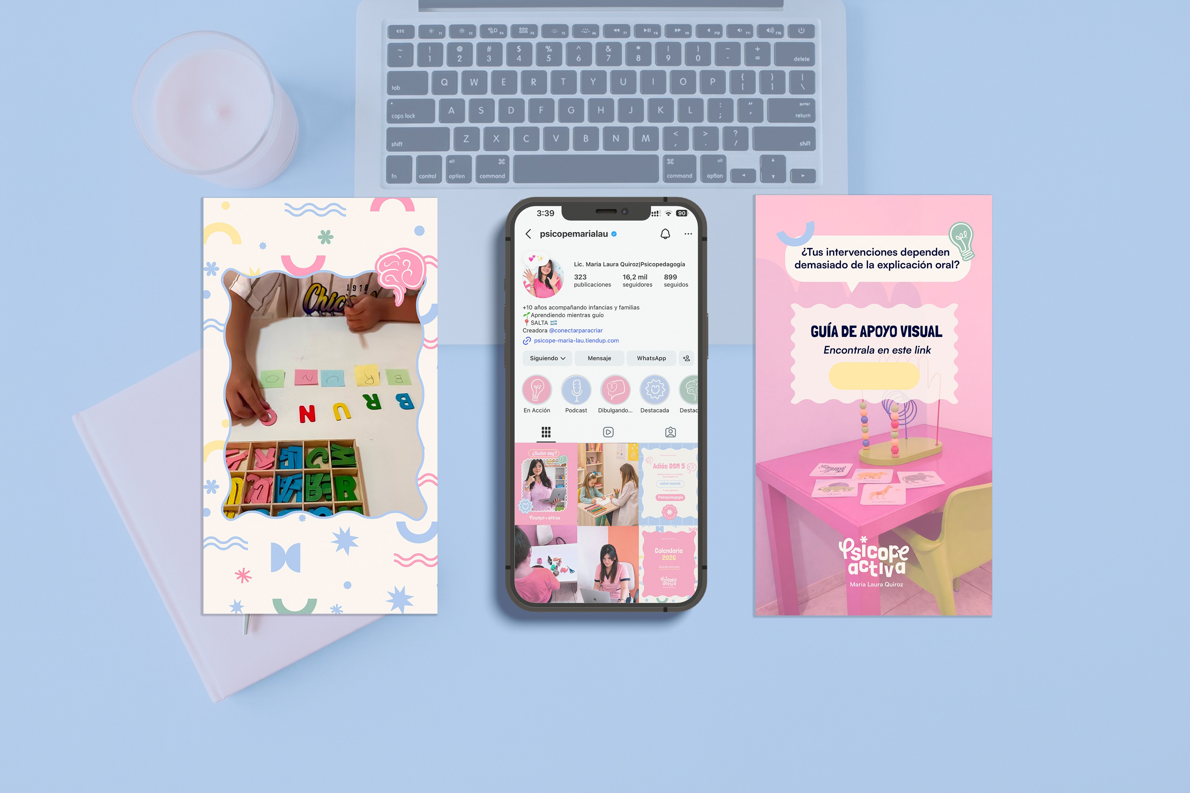 Psicope Activa es una marca que acompaña a psicopedagogas y docentes jóvenes para ejercer con herramientas prácticas y organización.